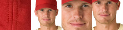 - Contrast color button, sewn eyelets and sandwich visor