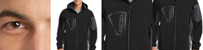 Our soft shell stands up to the elements and stands out with texture and bar tack details. Highly breathable and soft, this water resistant jacket is just right for the workday or the weekend. A hood and zippered sleeve vents add function and up-to-the-minute appeal.