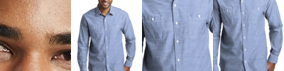 • 3-ounce, 100% cotton slub chambray